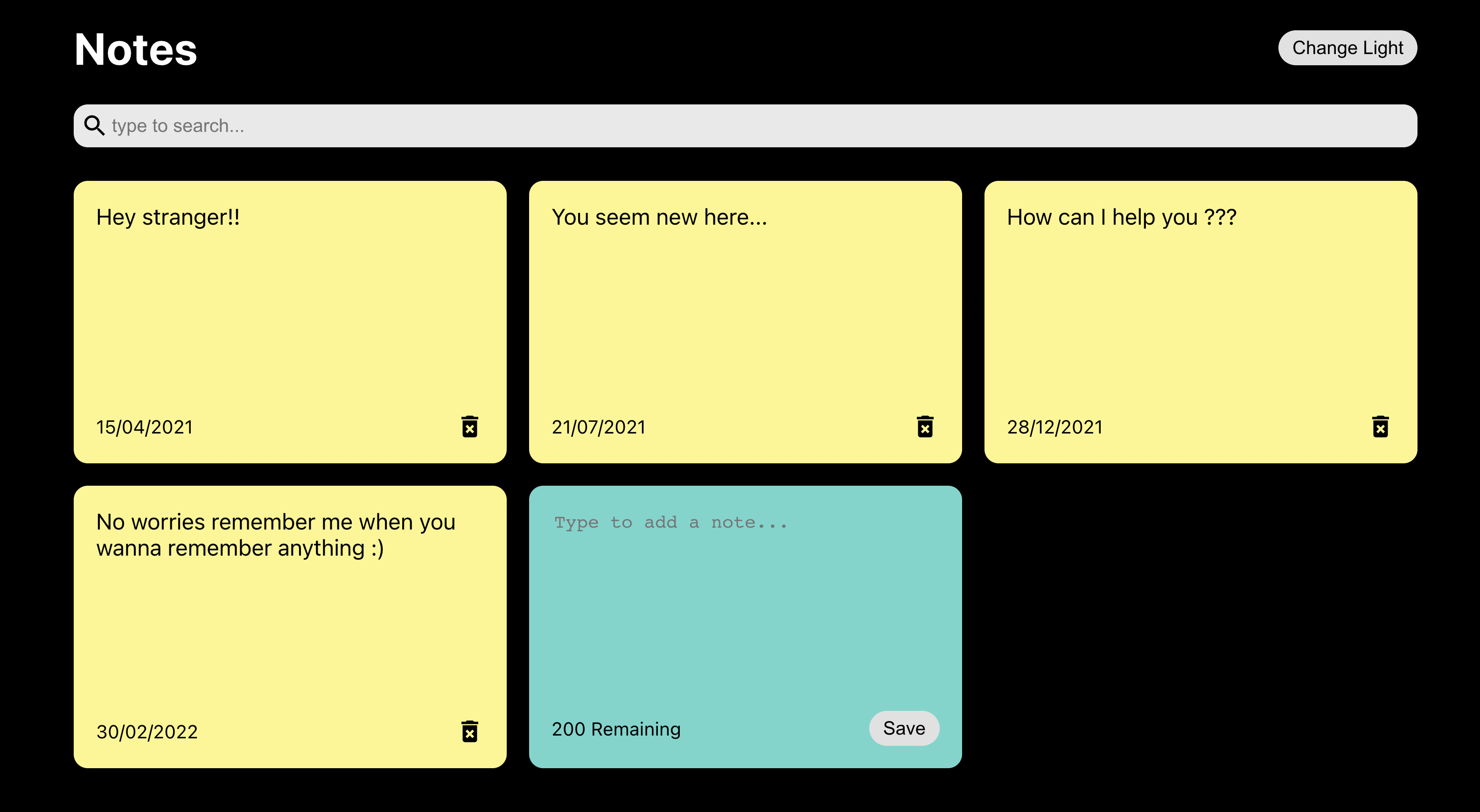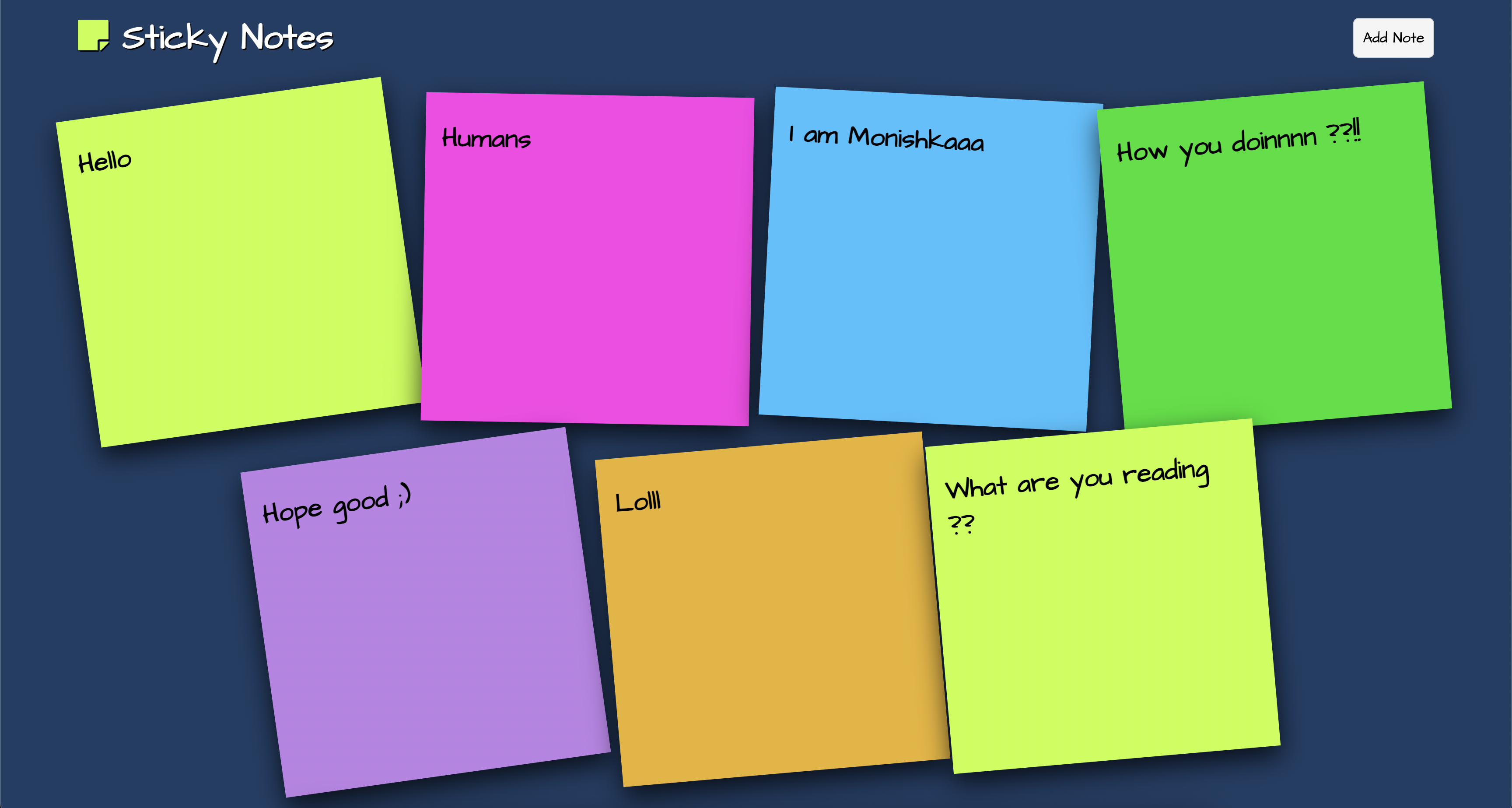 A beautiful page for sticking your notes on web. Just tap on Add note button, write down your text and press enter. A vibrant colored sticky note will appear on the screen. Double tap on the note, if need be to delete that.